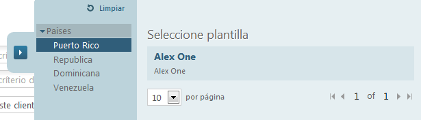 Si una plantilla no es seleccionada, escriba el nombre de la plantilla en el campo de texto. Las plantillas también pueden ser seleccionadas de el panel a mano derecha que contiene la lista de plantillas. Para ayudar en la busqueda de plantillas el filtro de taxonómias puede ser utilizado haciendo clíc en la flecha a mano izquierda y la lista de taxónomias se desplegará.